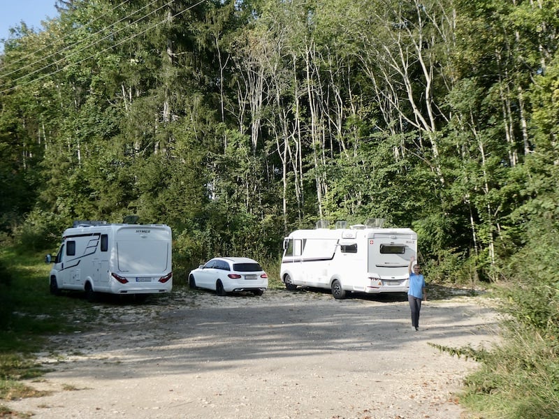 Hier finden wir einen schönen Parkplatz und geniessen Kaffee und Kuchen.