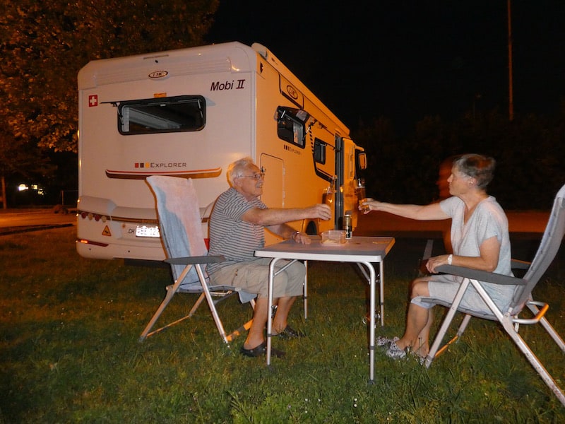 Nachtrag: Es ist kurz vor Mitternacht und noch immer 26 ° warm. Wir sitzen vor dem Mobi bei einem kühlen Bier. Alle Fenster und Dachlüfter stehen offen, in der Hoffnung, dass es etwas auskühlt.