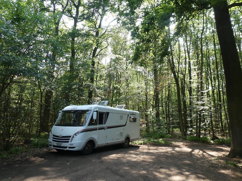 Es ist mörderisch heiss. Wir verkriechen uns auf einen schattigen Parkplatz in einem Wald bei Offenthal.