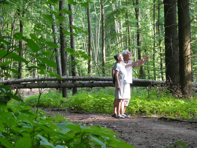 Hier ist die Hitze einigermassen auszuhalten. Wir spazieren durch den Wald, der sich offenbar weitgehend sich selbst überlassen wird.