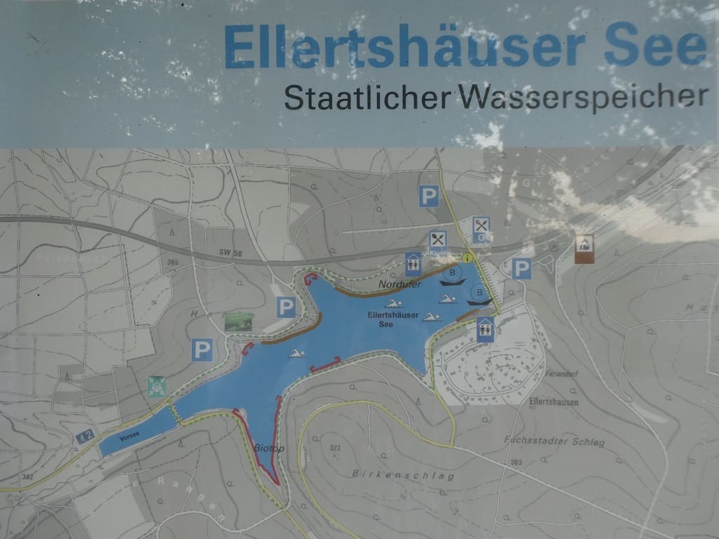Wir bekommen den Tipp beim Ellertshäuser See, unweit von Schweinfurt, gut übernachten zu können.