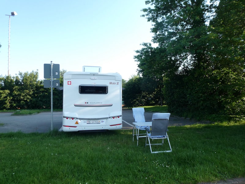 Danach fahren wir wieder auf den Stellplatz in Messel zurück. Wir finden sogar einen schattigen Platz in der Abendsonne. Es geht ein leichtes Lüftchen und wir lassen den Abend gemütlich ausklingen.