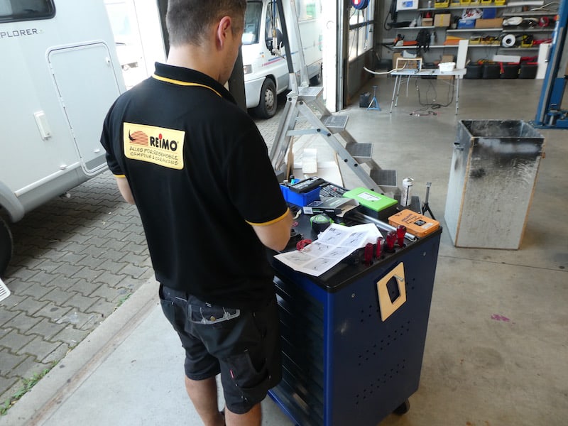 Zum Glück hat dieser Campingladen auch eine Werkstatt, in der sie solche Arbeiten anbieten. Heute um 15 Uhr haben wir dort einen Termin bekommen.