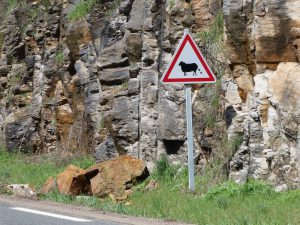 Es wird vor Schafen (oder deren Exkrementen) gewarnt. Viel mehr Angst machten uns die vielen losen Steinbrocken überall.