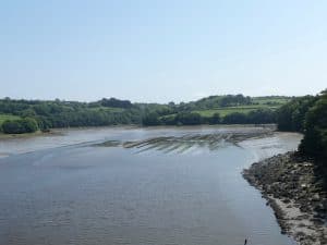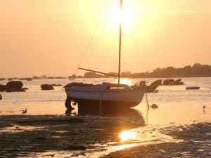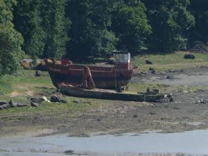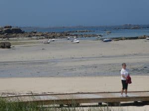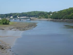 Wir überqueren den „Aber Wrac’h“ bei Niedrigwasser. Blick Richtung Meer (Plouguerneau)