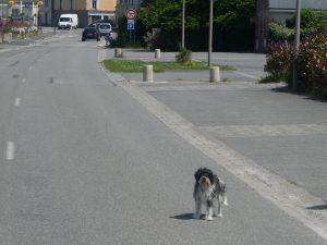 Später hatten wir in einer Ortschaft ein drolliges Erlebnis. Dieser Hund blieb die längste Zeit stur auf der rechten Fahrbahn stehen. Zwei Autos vor uns und auch wir mussten einen Bogen um ihn herum fahren.