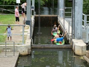 Es gibt hier auch Schleusen, allerdings mit wenig Höhenunterschied.