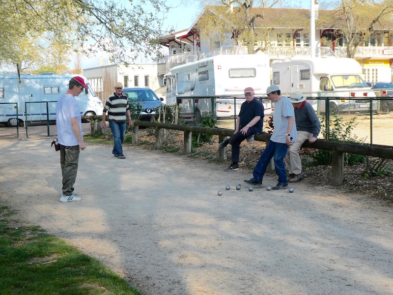 Als wir zurück kommen, spielen alte einheimische Männer immer noch sehr engagiert Boule hinter unserem Mobi.