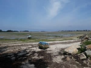 Danach fahren wir mehr oder weniger der Küste entlang, vorbei an Plouescat und der grossen Bucht, die bei Ebbe gerade trocken liegt.