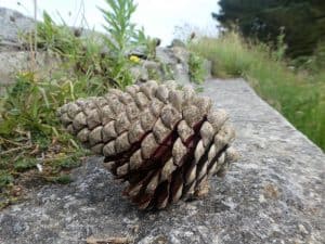 Ein grosser Zapfen ist auf den Weg gefallen. Er ist 300 g schwer.