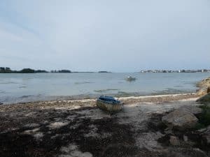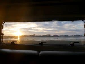 Auf dem Rückweg zum Stellplatz um 18 Uhr hat das Wasser in der Bucht etwa seinen Höchststand erreicht.