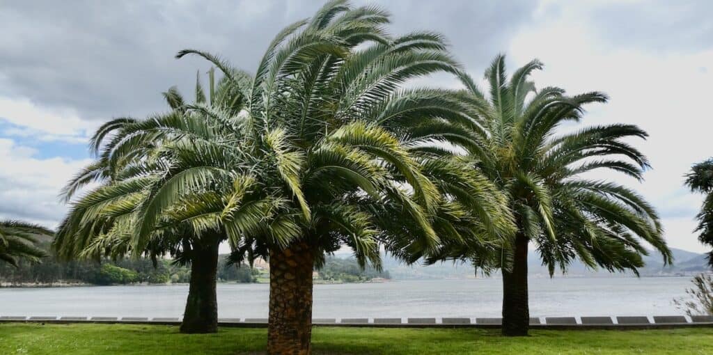 Tagsüber ist es weitgehend sonnig. Um draussen zu sitzen, ist uns der Wind allerdings zu frisch. Nachmittags ziehen Wolken auf es stürmt, dass die Palmwedel nur so fliegen. Später kommt die Sonne wieder, aber es bleibt frisch. Wir machen es uns im Mobi gemütlich.