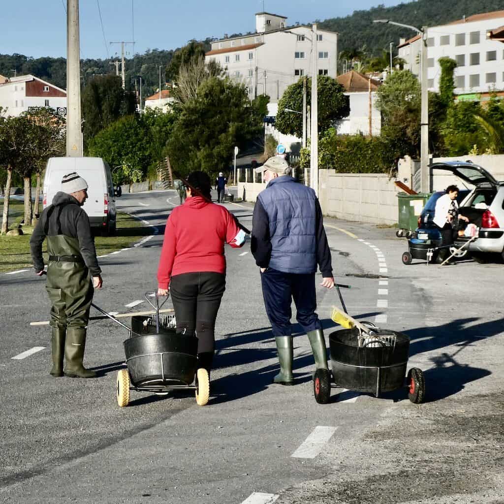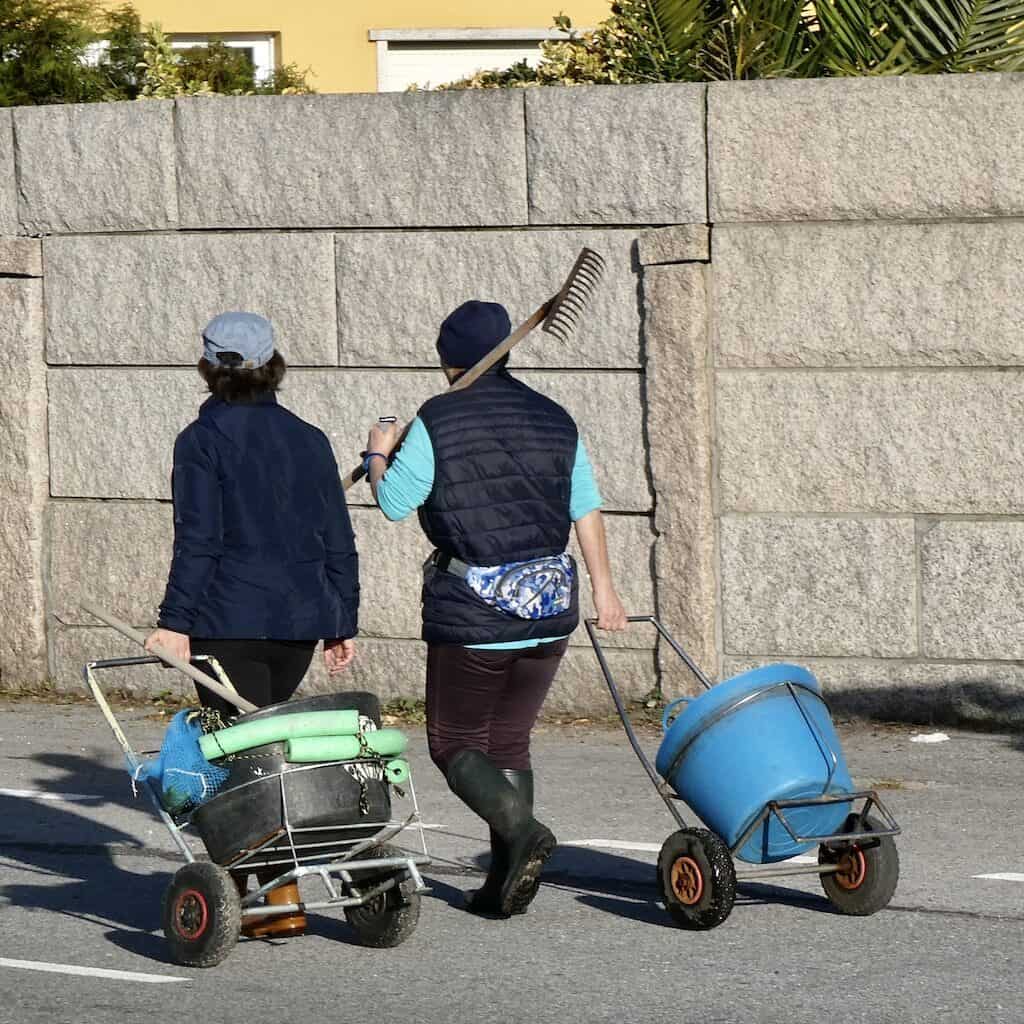 Am Morgen kommen viele Leute in ihren Autos, parken hier und laufen dann in Gummistiefeln und mit Harken, Wägelchen und Körben bestückt in Richtung Nachbarort los. Auf was sind die wohl aus?