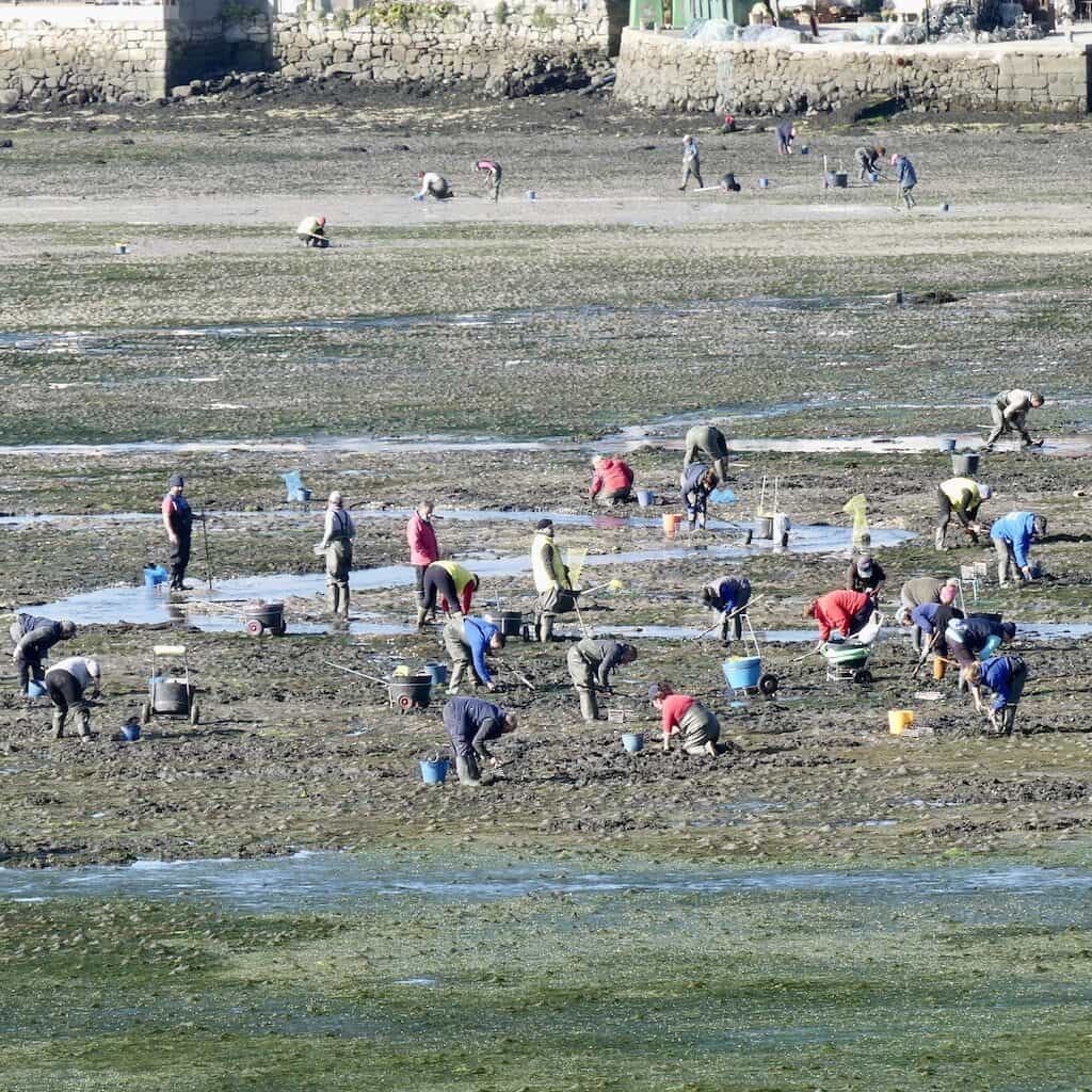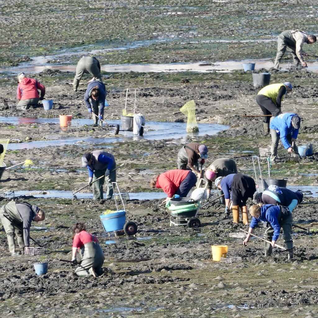 Nach etwa 2 Kilometern tauchen sie im Watt wieder auf. Scharen von Leuten, die im Schlick buddeln.
