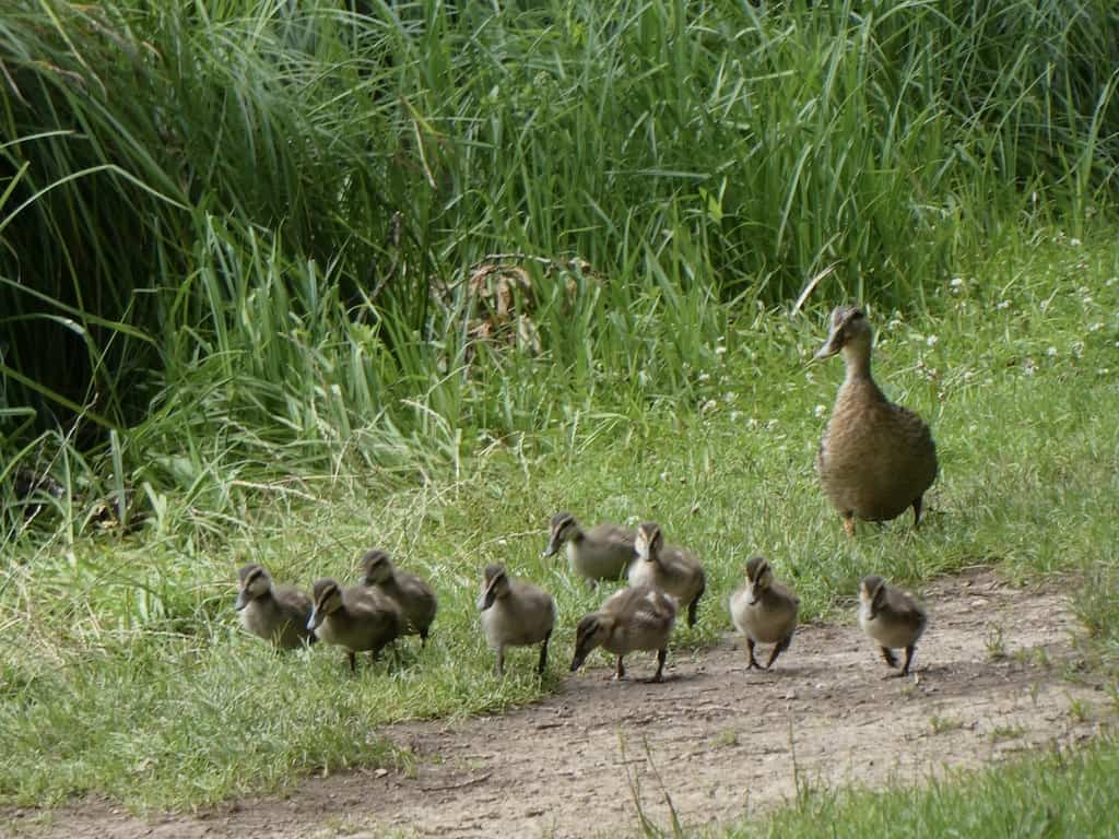 Wir sind hier nicht alleine, auch eine Entenmutter mit ihren Jungen ist unterwegs.