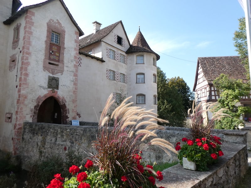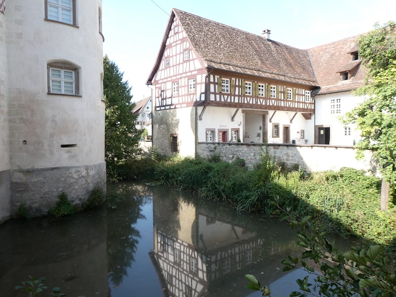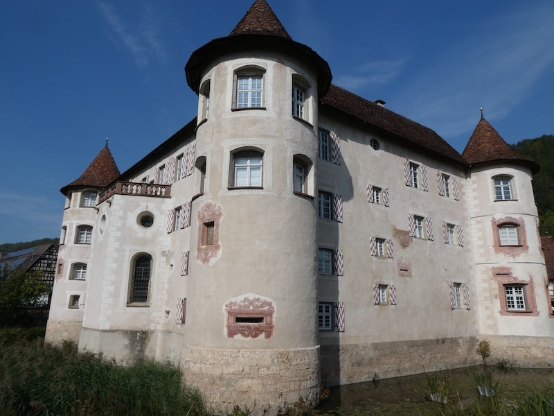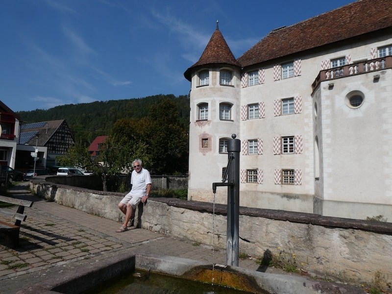 Danach unternehmen wir einen Ausflug zum Wasserschloss Glatt. Der kürzeste Weg führt über eine sehr schmale Strasse über den Berg in das nächste Tal der Glatt. So führt uns unser Navi auf dem Hinweg. Wikipedia weiss es: Das Wasserschloss Glatt liegt im Dorf Glatt, einem Stadtteil von Sulz am Neckar, im Tal der Glatt. Es ist eines der ältesten Renaissance-Schlösser des Landes Baden-Württemberg. Mehr darüber hier.