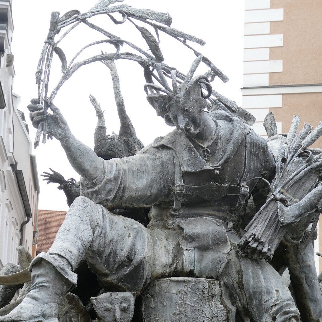 Auf dem Markplatz steht ein Brunnen des Künstlers J. M. Neustifter. Eine Figur zeigt Nikolaus von Luckner wie er zum Rathausturm schaut, wo täglich um 12:05 von einem Glockenspiel die Marseillaise ertönt. Weitere Figuren sind eine Waldhexe und ihre Kinder, sowie ein Bilmesschneider.