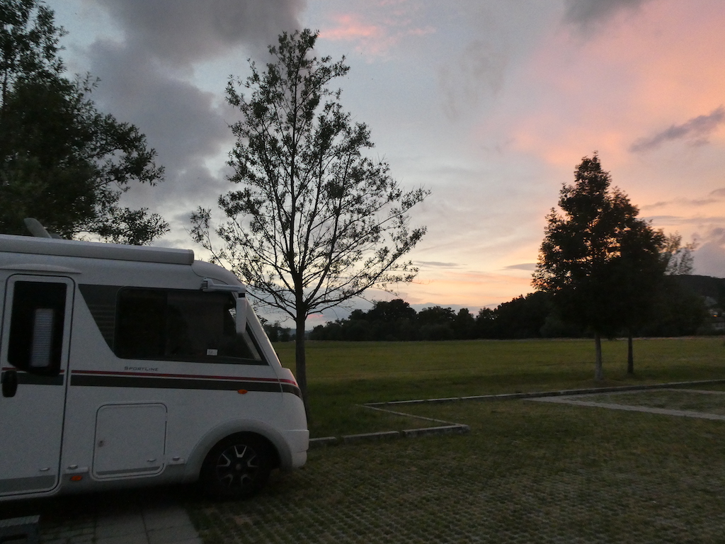 Und so landen wir, mit weitem Bogen um die Stadt, auf besagtem Parkplatz und stehen hier mit einigen anderen Campern ganz prima. Es ist wohl kein offizieller Stellplatz, aber es wird offenbar toleriert. So verbringen wir den Rest des Tages hier. Das Wetter ist perfekt: bewölkt, aber trocken. Manchmal drückt die Sonne durch, aber es wird nie zu heiss.