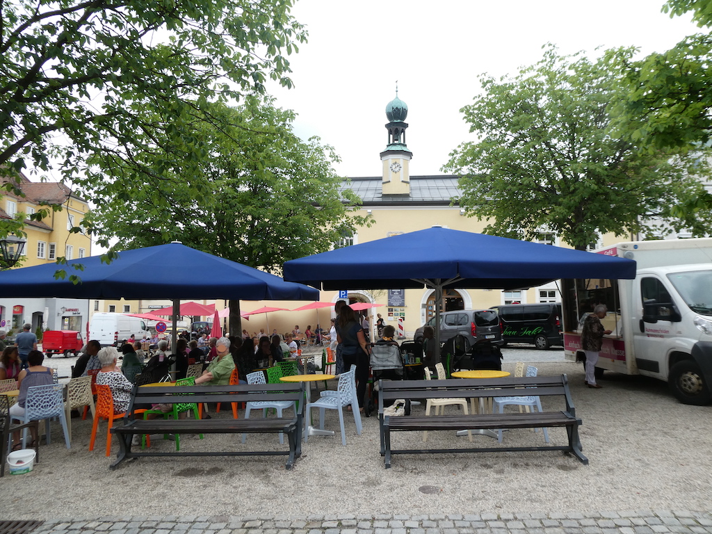 Heute Morgen wollten wir gerade zu einem Rundgang in Viechtach starten, da fing es an zu regnen. Mit Schirm im Gepäck konnten wir später doch noch starten.