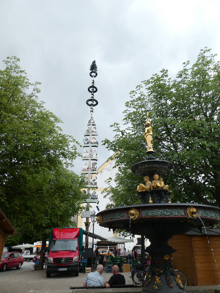 Auch hier auf dem Marktplatz darf ein hübscher Maibaum der Zünfte nicht fehlen.