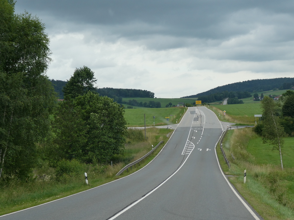 Es ist immer noch hügelig, aber grundsätzlich fahren wir im Tal des Regen.
