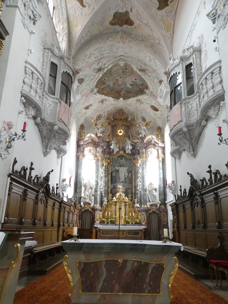 Schnell noch ein Blick in die Stadtpfarrkirche Sankt Augustinus, dann treibt uns ein nächster Regenschauer zurück zum Mobi.