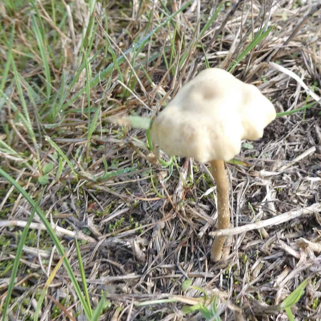 Bei blauem Himmel verlassen wir den schönen Stellplatz, das stämmige Pferd und die Pilze, die inzwischen aus dem Boden schiessen.