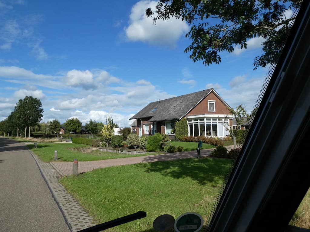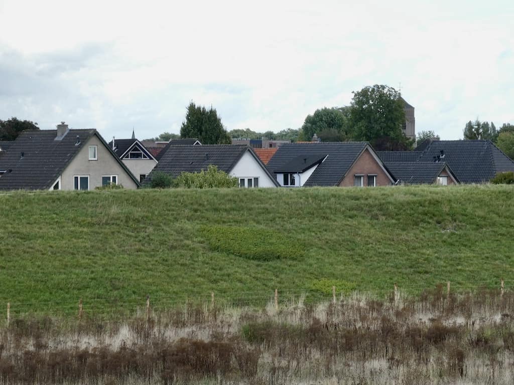 Uns gefallen die saftig grünen Weiden, die schönen Häuser und Gärten, viele davon hinter dem Deich versteckt.
