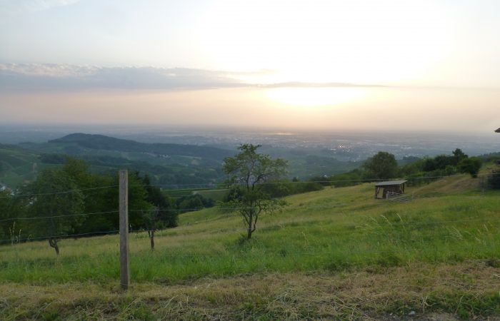 In der Ferne, im Dunst der grossen Hitze, liegt Freiburg im Breisgau.