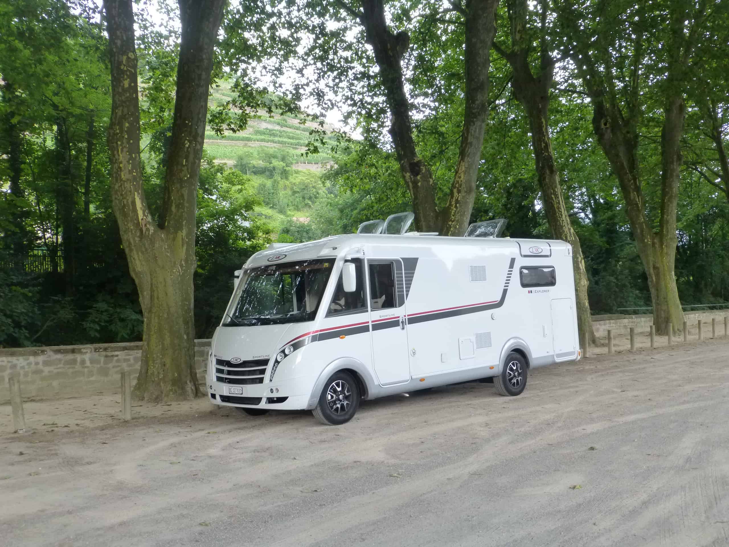 Der Standplatz in Guebwiler liegt wunderbar unter Platanen, ist aber leider durch den Verkehr sehr laut.