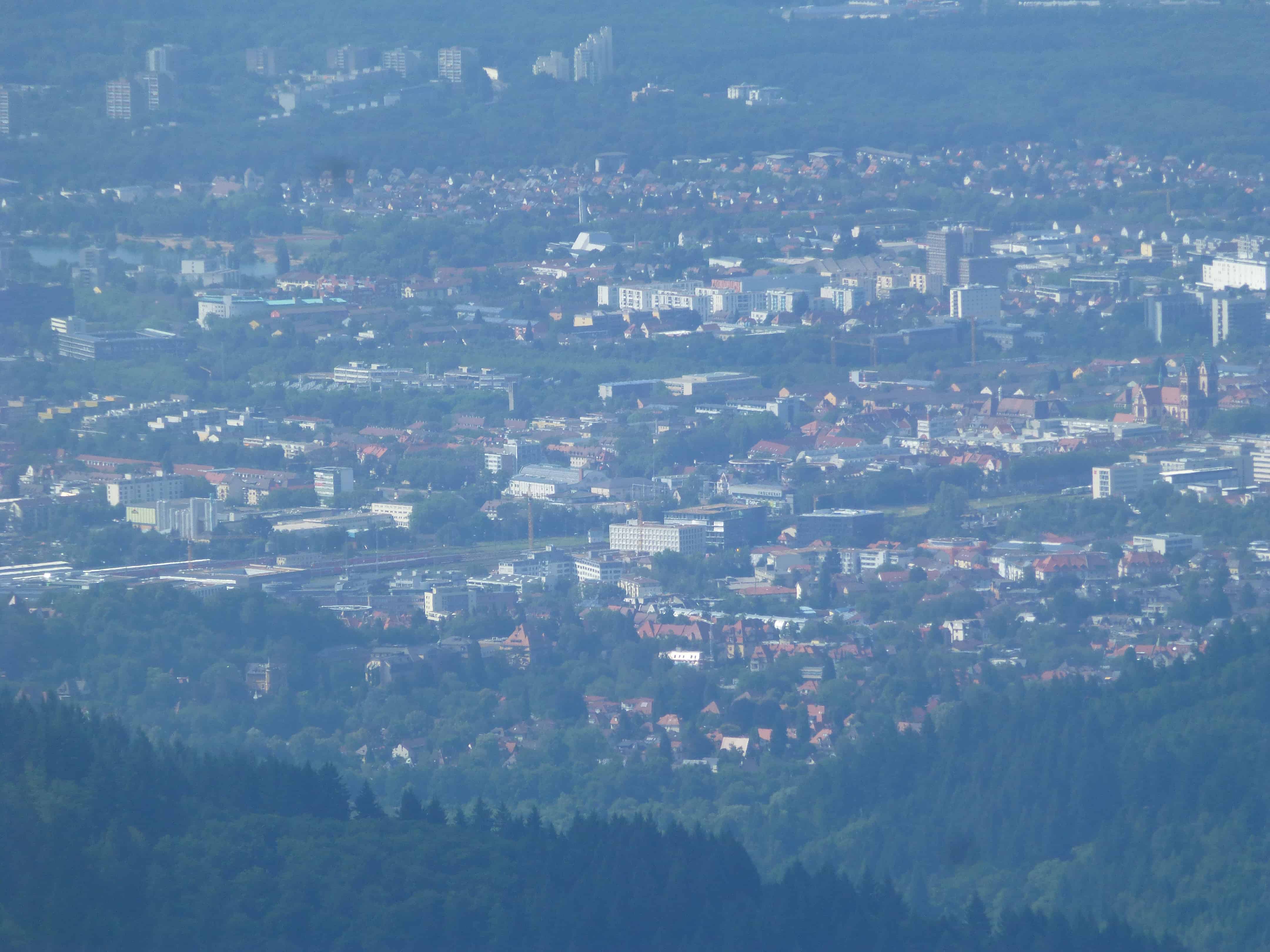 In der Ferne, im Dunst der grossen Hitze, liegt Freiburg im Breisgau.