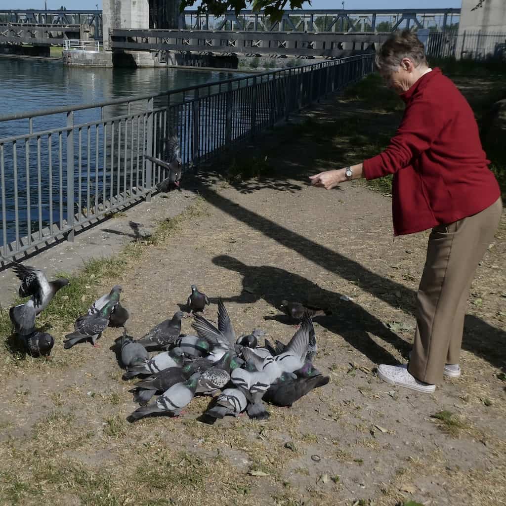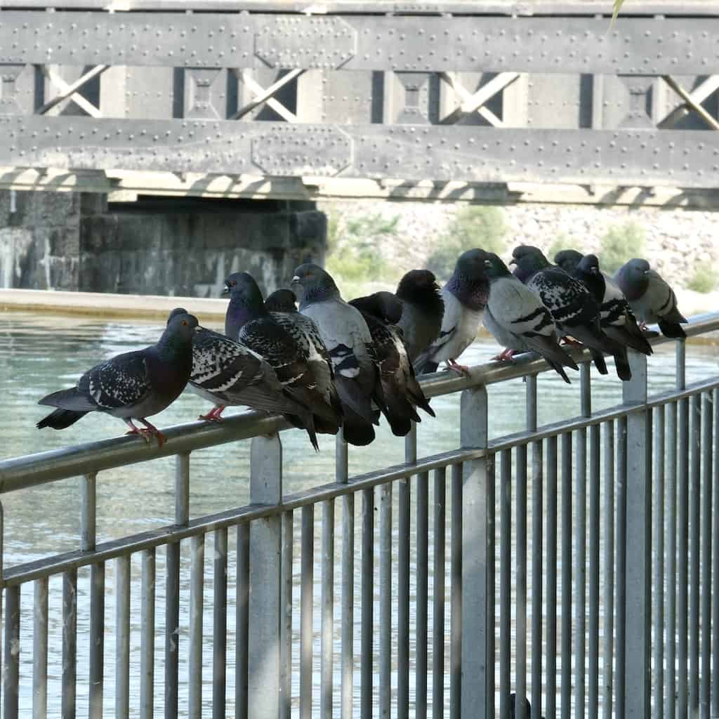 Die Tauben sitzen in Lauerstellung als ahnen sie, dass es bald auch für sie Frühstück gibt: Renates Müsli