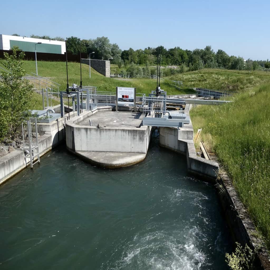 Das Wasserkraftwerk erzeugt Strom und sorgt für den Restwasserabfluss in den Altrhein unterhalb des Wehrs.