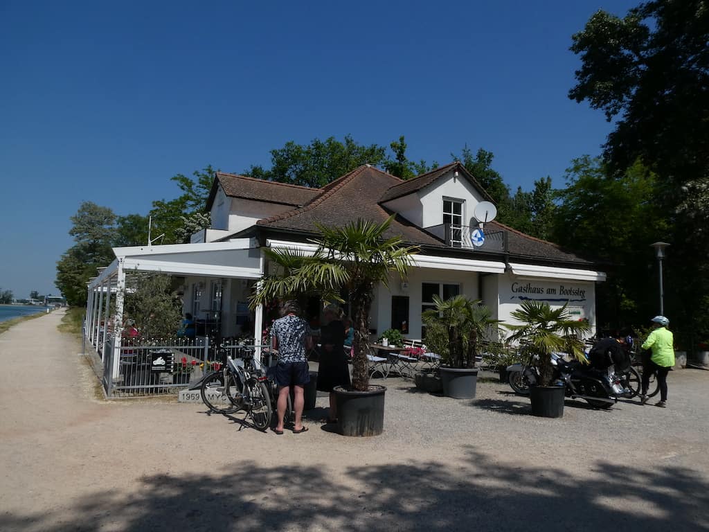 Weiter flussaufwärts gibt es einen kleinen Yachthafen und ein Gasthaus. Da Renate das Mittagessen schon vorbereitet hat, kehren wir nicht ein.