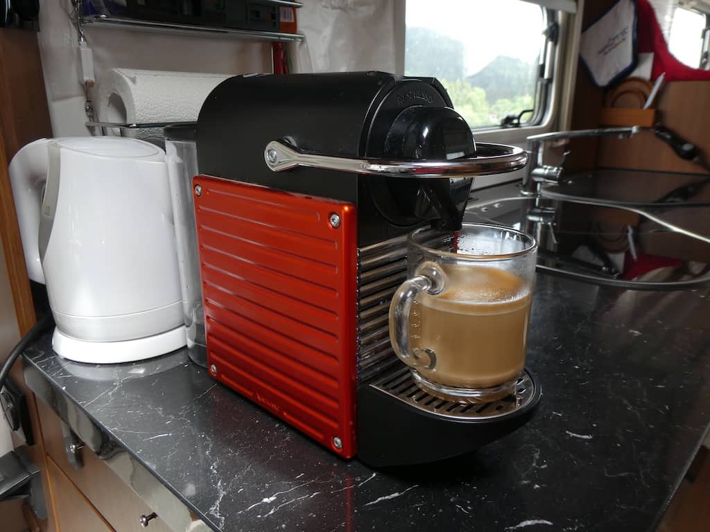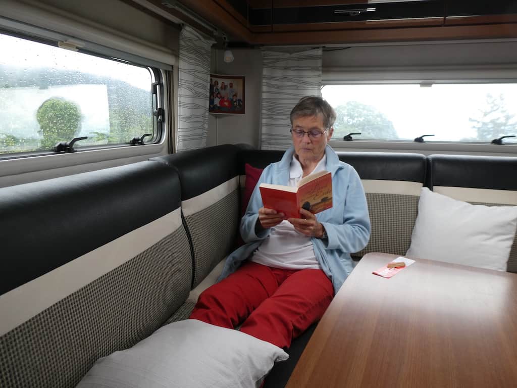 Wir beschäftigen uns selbst mit viel lesen und ruh’n. Nur die Kaffeemaschine hat heute reichlich zu tun.