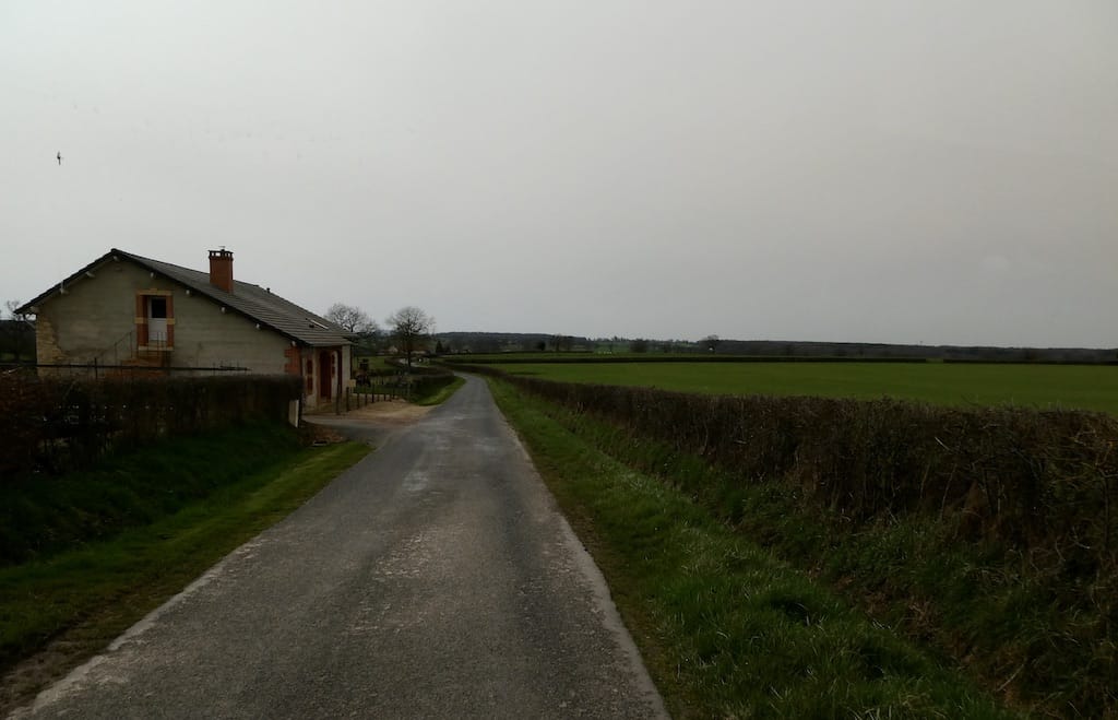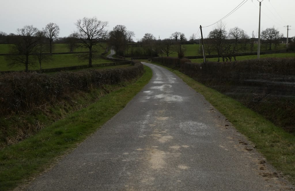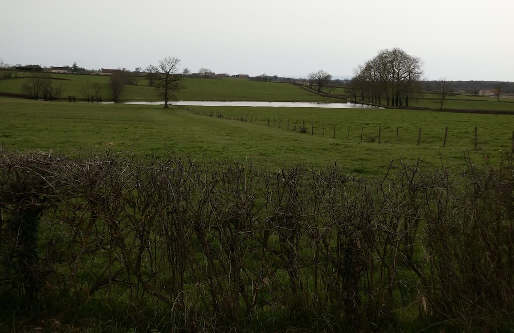 Eigentlich eine sehr schöne hügelige Landschaft mit keinen Bauernhöfen, vielen Kühen und kleinen Tümpeln.