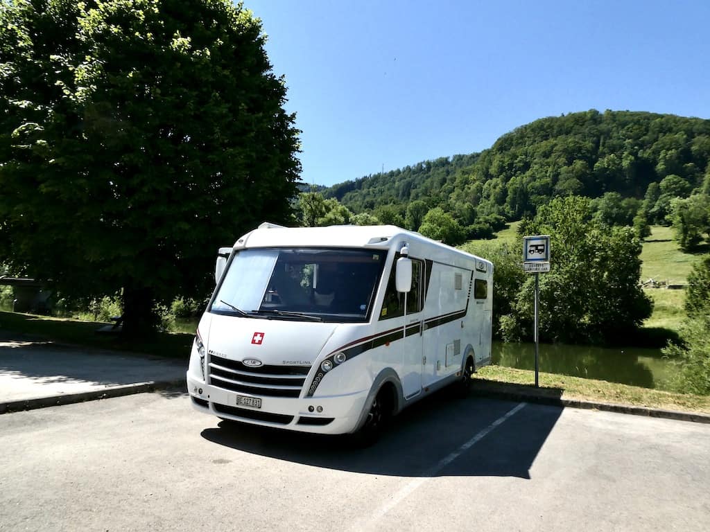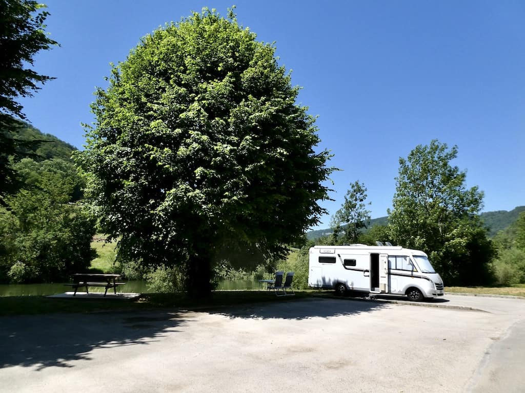 Natürlich sind wir gespannt, ob unser anvisierter Stellplatz in Vaufrey noch frei ist. Es gibt nämlich nur zwei offizielle Parzellen für Reisemobile.