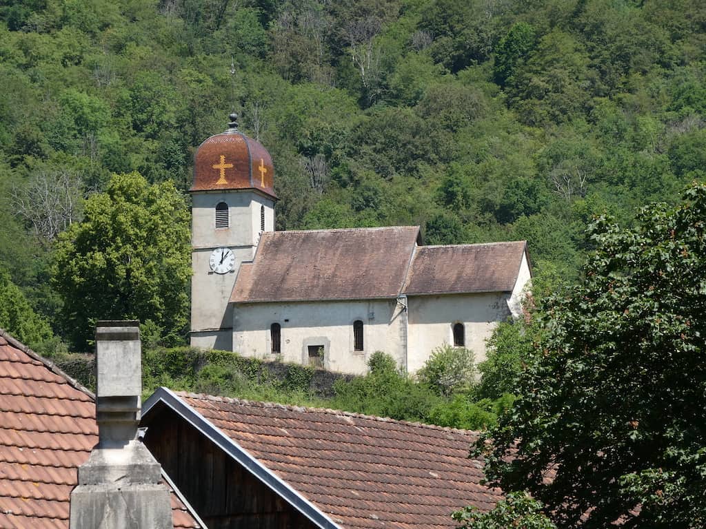 Vaufrey ist eine Gemeinde mit 153 Einwohnern. Viel gibt es nicht zu sehen. Kein Laden, kein Restaurant, keine Möglichkeit um Geld hierzulassen. Oberhalb liegt die Kirche Saint-Luc-et-Sainte-Colombe, die zu besichtigen wir uns bei diesen Temperaturen ersparen.