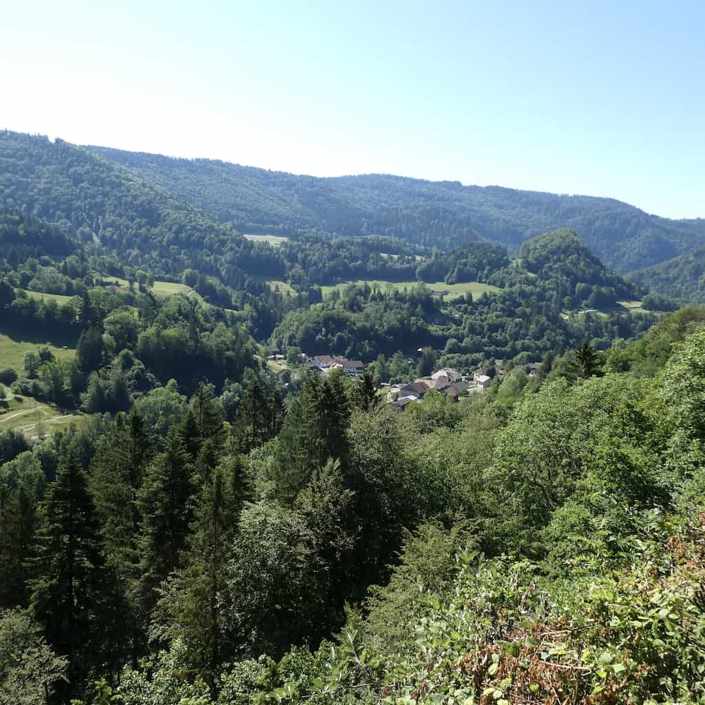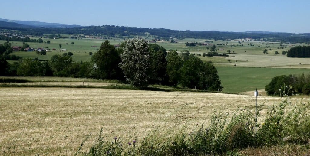 Unsere Route führt über ein Hochplateau auf etwa 800 m ü. M. bis wir bei Saint Hippolyte auf etwas 400 m ü. M. wieder ins Tal des Doubs kommen.