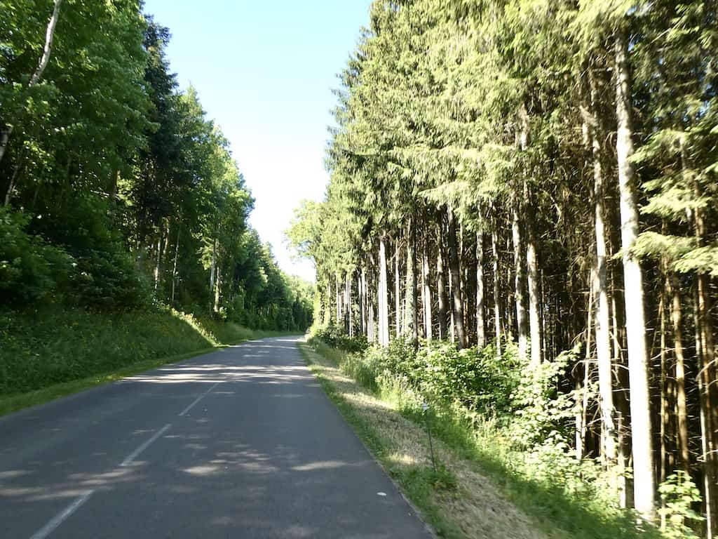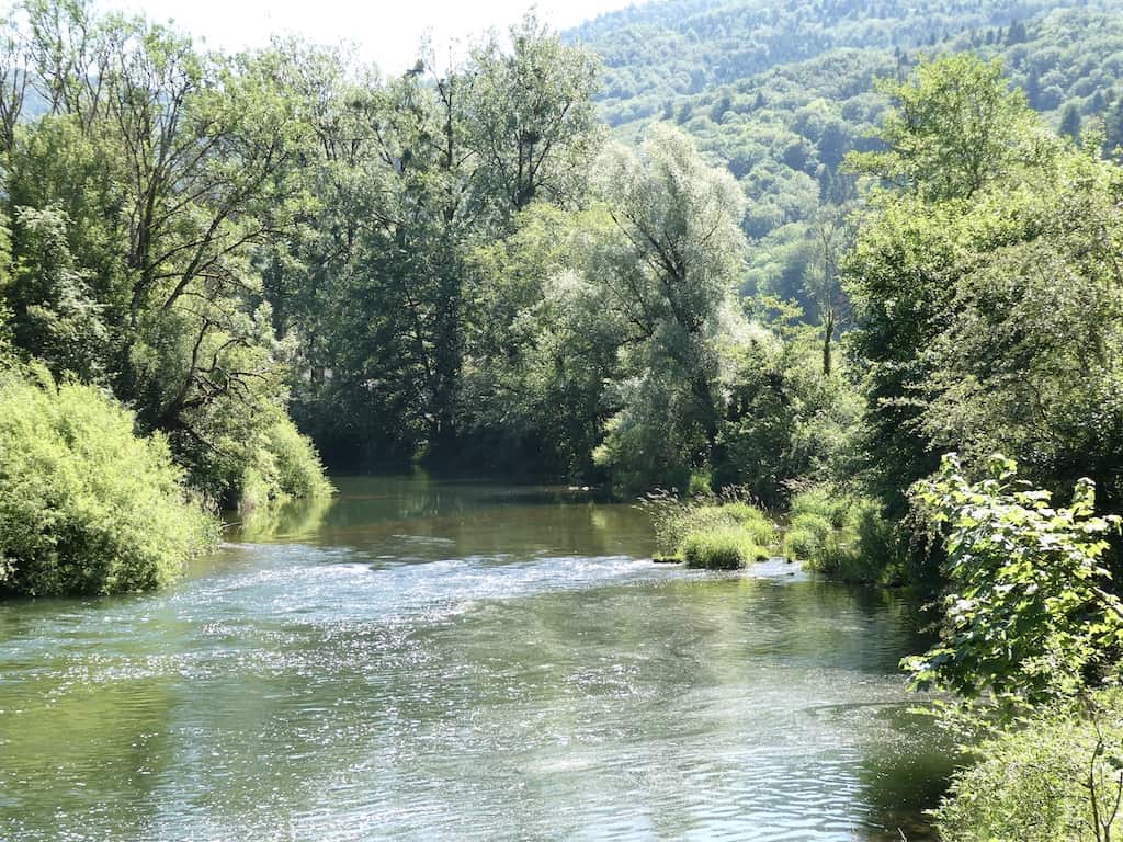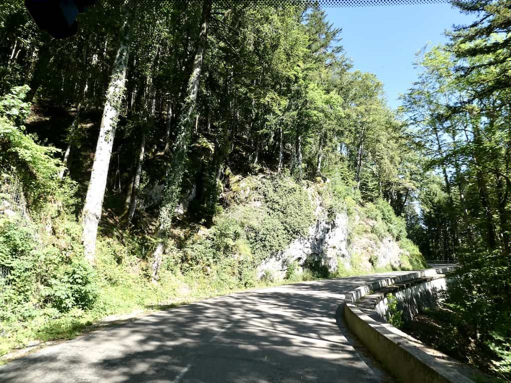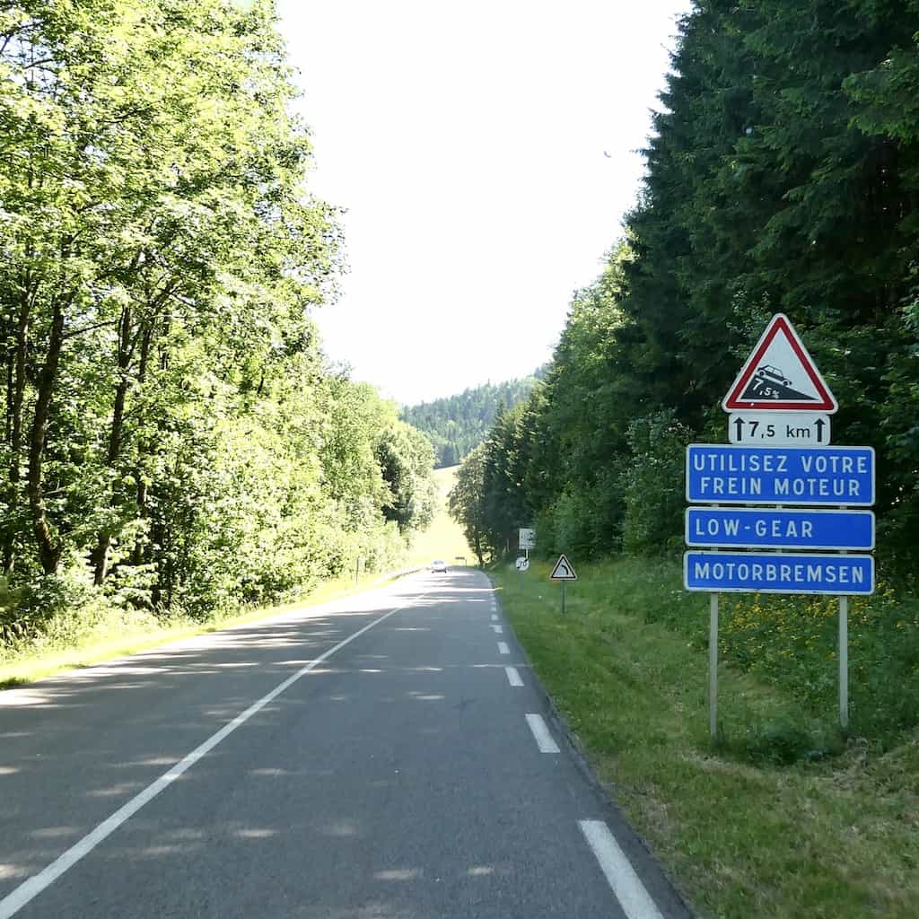 Was wir hochgefahren sind, müssen wir nun auch wieder runter, ziemlich steil runter, bis wir in Saint Hippolyte wieder im Tal des Doubs ankommen.