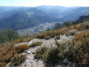 Von da sehen wir weit ins Land und unter uns Florac . . .