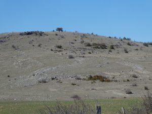 Wir erreichen den Parkplatz auf dem Hochplateau auf etwa 950 m.ü.M. und wandern noch ca. 15 Minuten zum Aussichtspunkt „Le Pradal“.