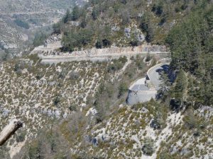 Auf einigen nicht sehr breiten Strasse geht es in Serpentinen steil nach oben. In diesen steilen Spitzkehren hat unser Automat Mühe wieder auf Touren zu kommen. Da ist es gut, dass man auch von Hand schalten kann.