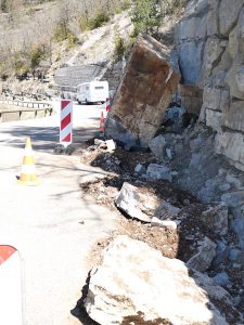 Die Regenfälle der letzten Zeit haben hier zu Fels- und Erdrutschen geführt.