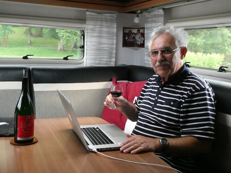 Zum Abendbrot öffnen wir eine Flasche Rotwein, die uns die 104jährige Lu in Miltenberg mitgegeben hat.