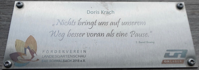 Auf den meisten Parkbänken stehen „schlaue“ Sprüche ihrer Sponsoren, hier einige Kostproben: