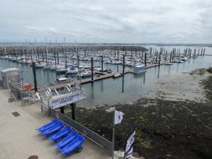 und andererseits der Sportboothafen. Eine gewaltige Anlage, natürlich mit Schwimmstegen, denn die Tide beträgt hier um die 8 Meter.