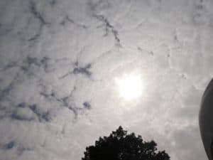 Ein interessantes Spiel der Wolken, schon den ganzen Tag. Mal wird die Sonne schier verdeckt, dann knallt sie wieder ungefiltert auf uns nieder. Aber wir beklagen uns keinesfalls. Es könnte heute noch einen schönen Sonnenuntergang geben.