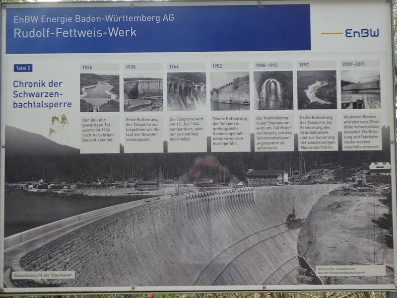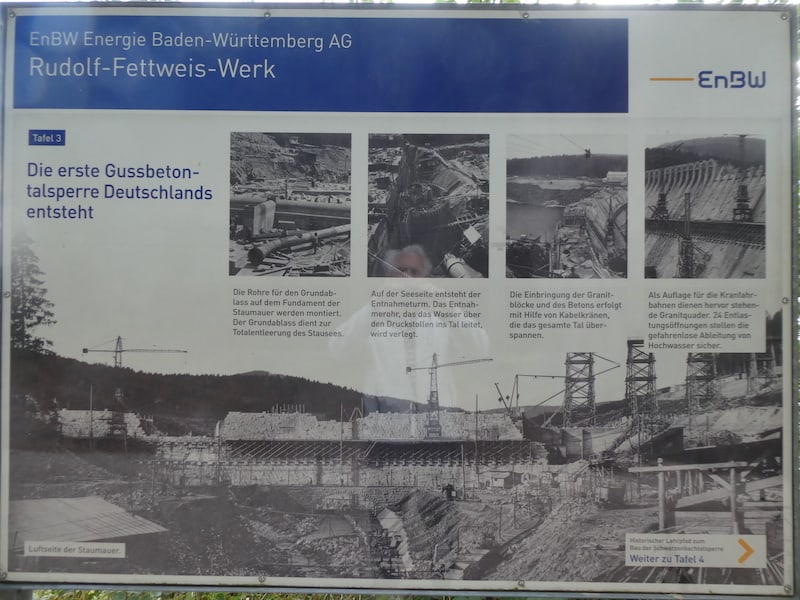 Uns genügt der Lehrpfad über die Entstehung des Bauwerks auf mehreren Tafeln. Diese Talsperre wurde schon 1922-24, als erste Gussbeton-Talsperre Deutschlands, gebaut.