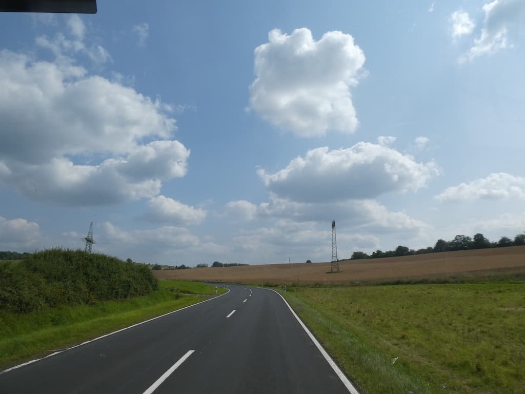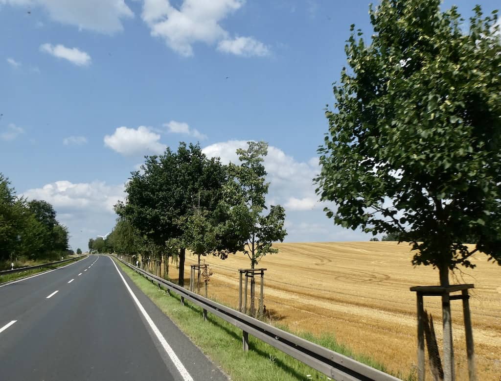Zurück auf dem Stellplatz ist es uns hier zu heiss. Es fehlt uns zum Bleiben der Schatten. Wir hoffen, dass wir auf dem Weg nach Eisenach irgendwo ein schönes Plätzchen im Schatten finden. Dem ist aber nicht so.